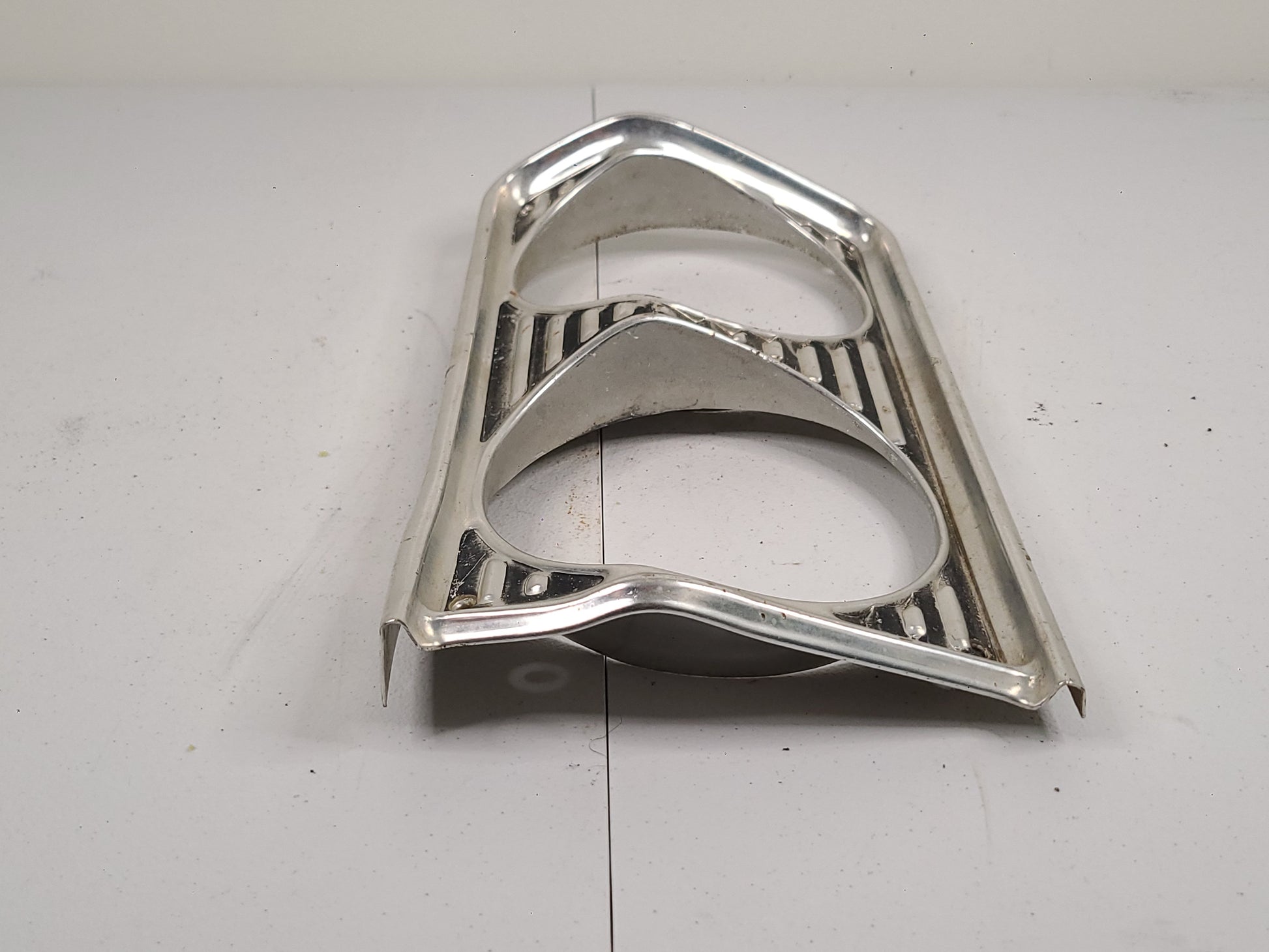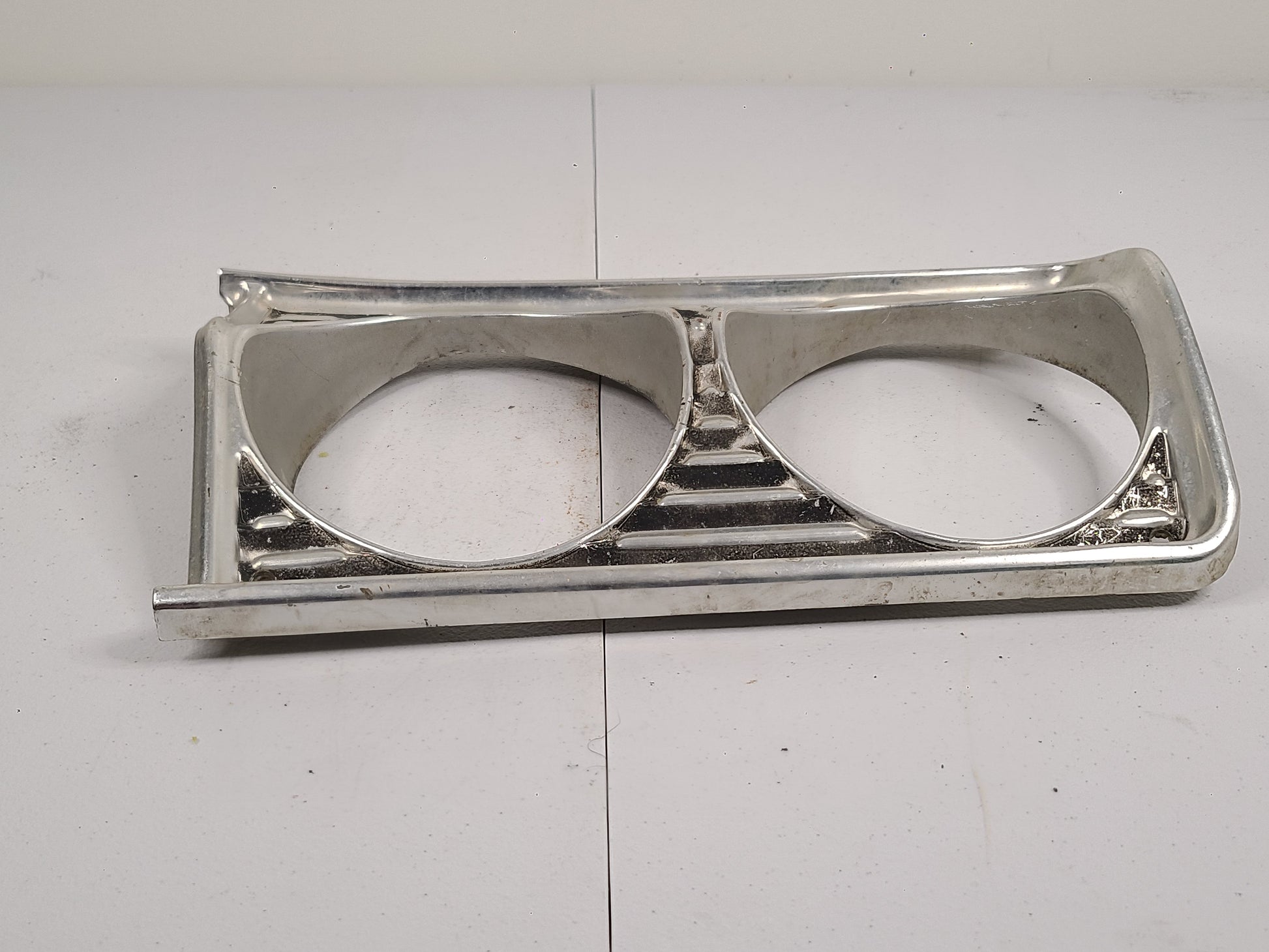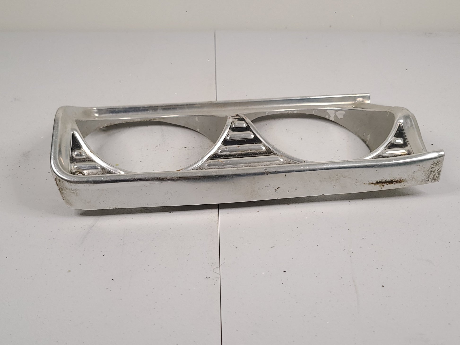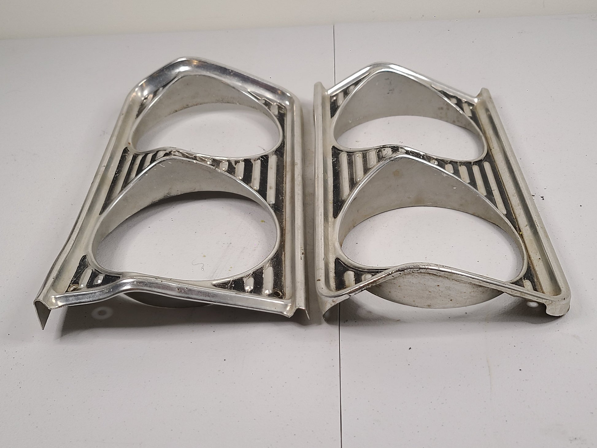 USED 1964 Plymouth Fury/Belvedere Head Light Bezels. Sold as a pair. Both head light bezels have dents mostly on the edges as seen in the pictures. There are no dents in the face of the bezel that have been observsed. Both bezels have finish wear.