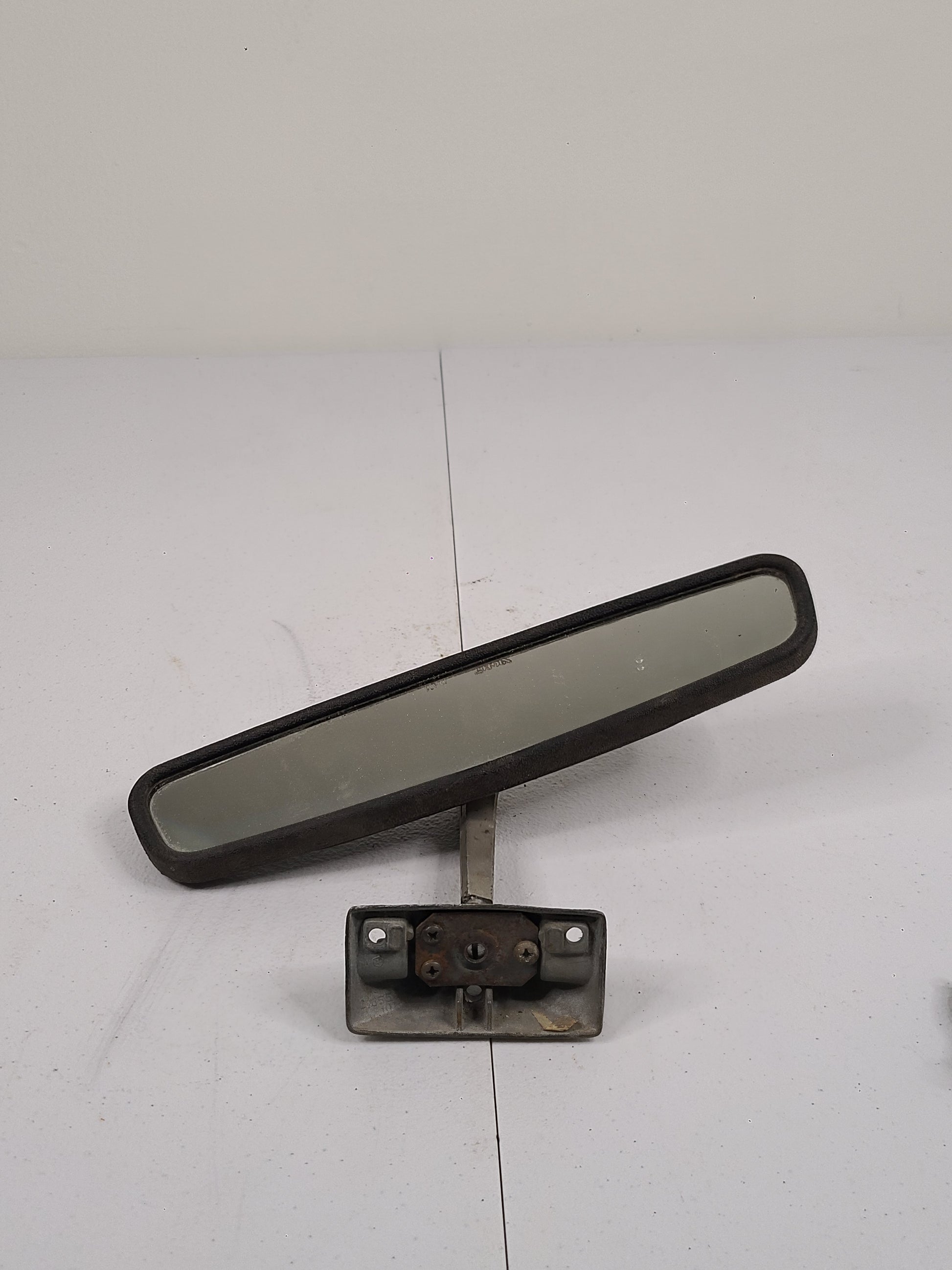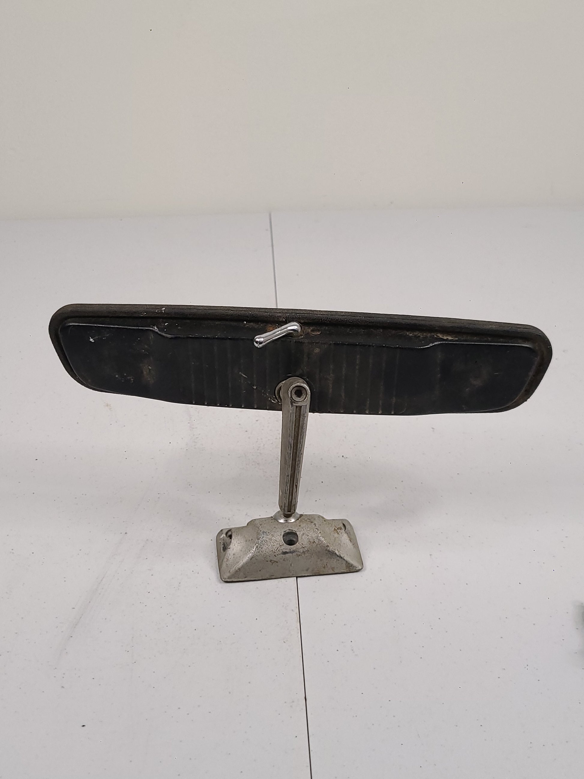 USED Good condition 1968 Charger rear view mirrior. Has no cracks or scratches or blemishes. The back side has a few minor scratches and the mount has some finish wear. Overall good usable/restorable condition.